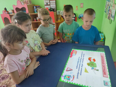 -прогулка и знакомство с дорожными знаками возле сада, беседы о правильном переходе через проезжую часть;
